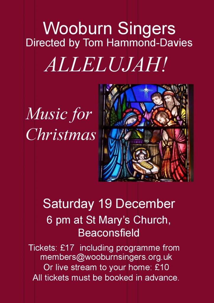 To book an on-line link for the concert, please email: chairman@wooburnsingers.org.uk (if this is a gift, please add email address of recipient)