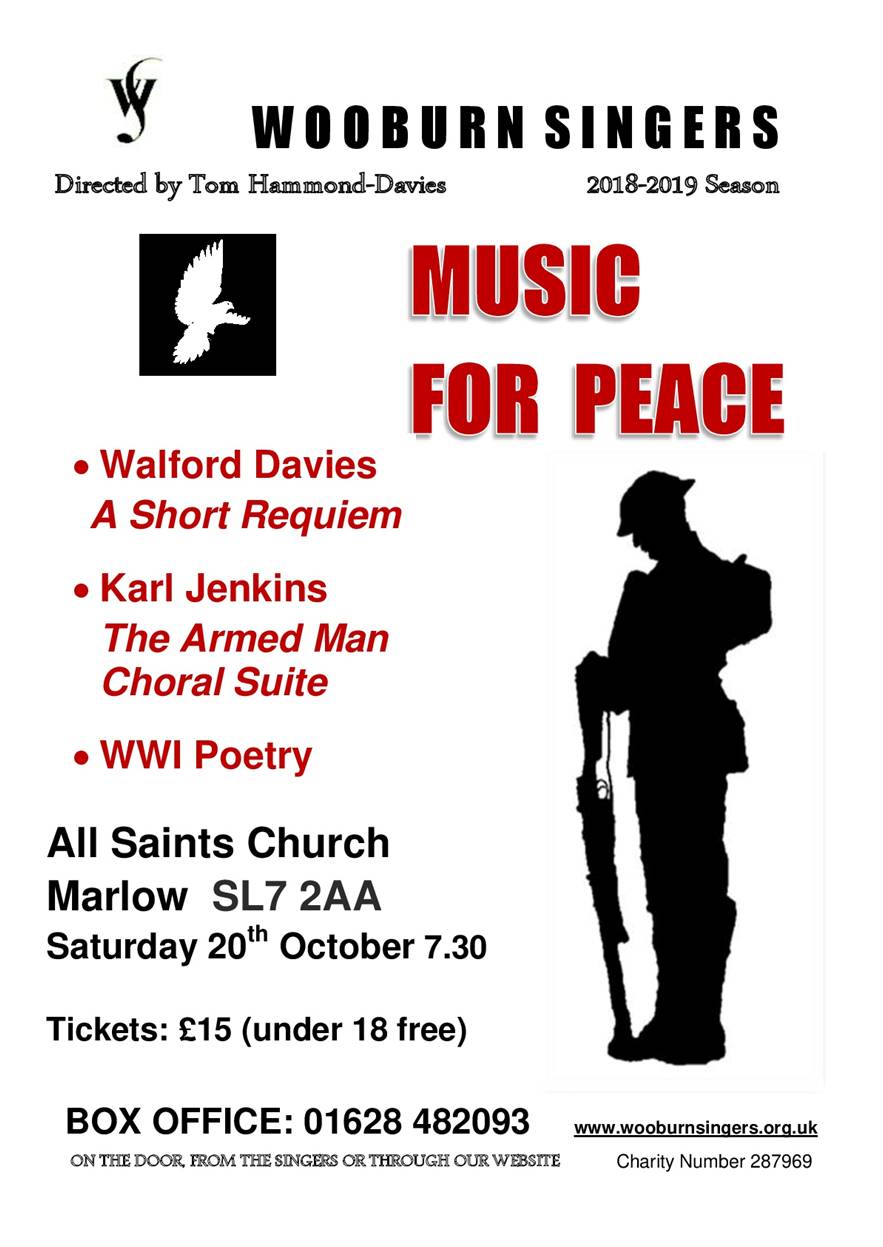 Karl Jenkins’ The Armed Man Choral Suite and Walford Davies’ A Short Requiem are interspersed with readings from World War I poets and their contemporaries.