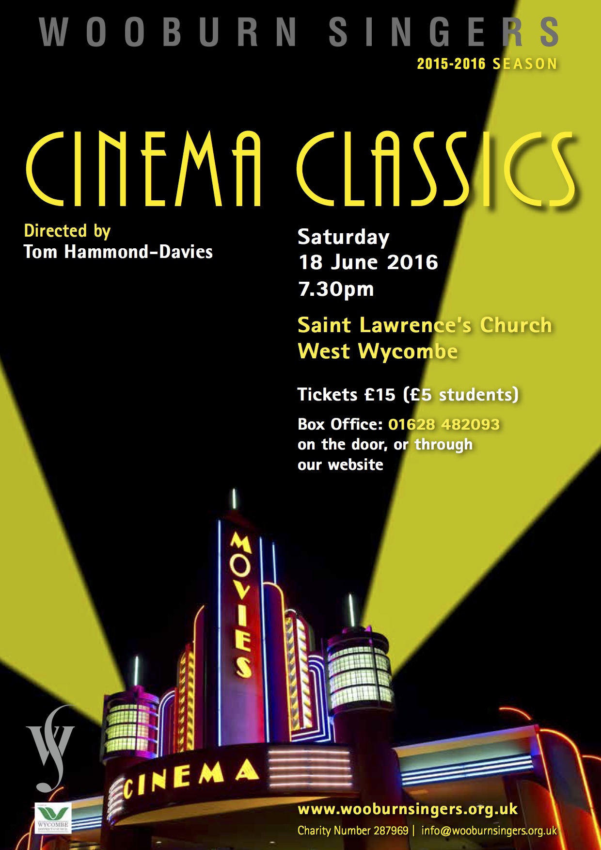 Summer Concert 2016 – Cinema Classics Event Details Date: 18 June, 2016 19:30 – 22:00 Venue: St Lawrence's Church, West Wycombe Categories: Concert St Lawrence’s Church, West Wycombe. Tickets: £15 (£5 students) available from: The Little Box Office tickets@wooburnsingers.org.uk 01628 482093 or on the door